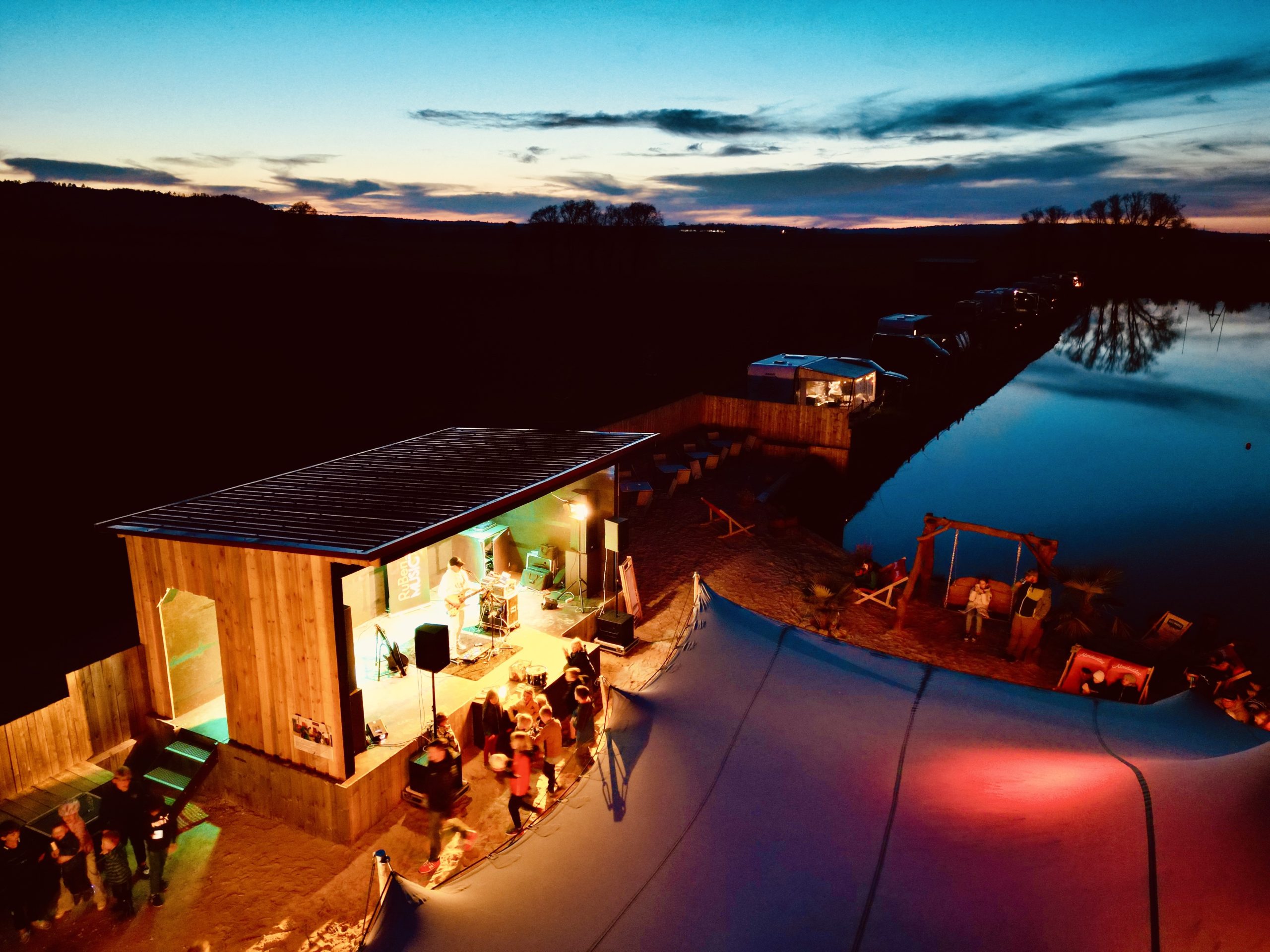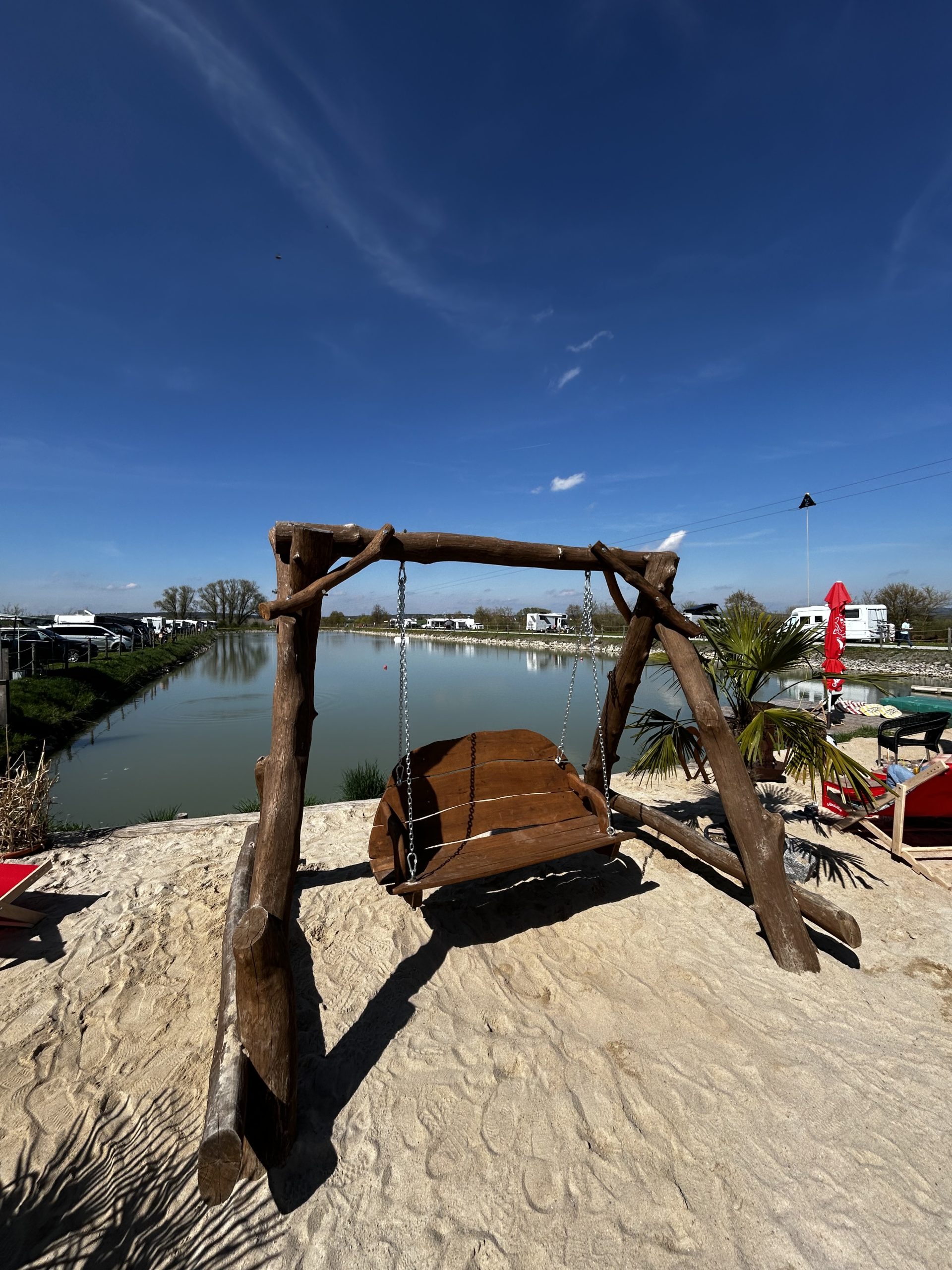 In der Hauptsaison (Pfingsten bis Mitte September) öffnet die Beach Bar direkt am Wakepark‑See. Gäste genießen Cocktails, kühle Softdrinks, regionale Biere und Weine – mit den Füßen im Sand und Blick auf die fränkische Landschaft – perfekte Sonnenuntergänge inklusive. Dazu stehen Pizza und Flammkuchen auf der Karte; jeden Samstagabend Livemusik mit wechselnden Interpreten (Eintritt frei!). Die stimmungsvolle Strandbar lädt zum Sonnenuntergang, Austausch und Relaxen ein – Urlaubsfeeling direkt vor der Haustür.