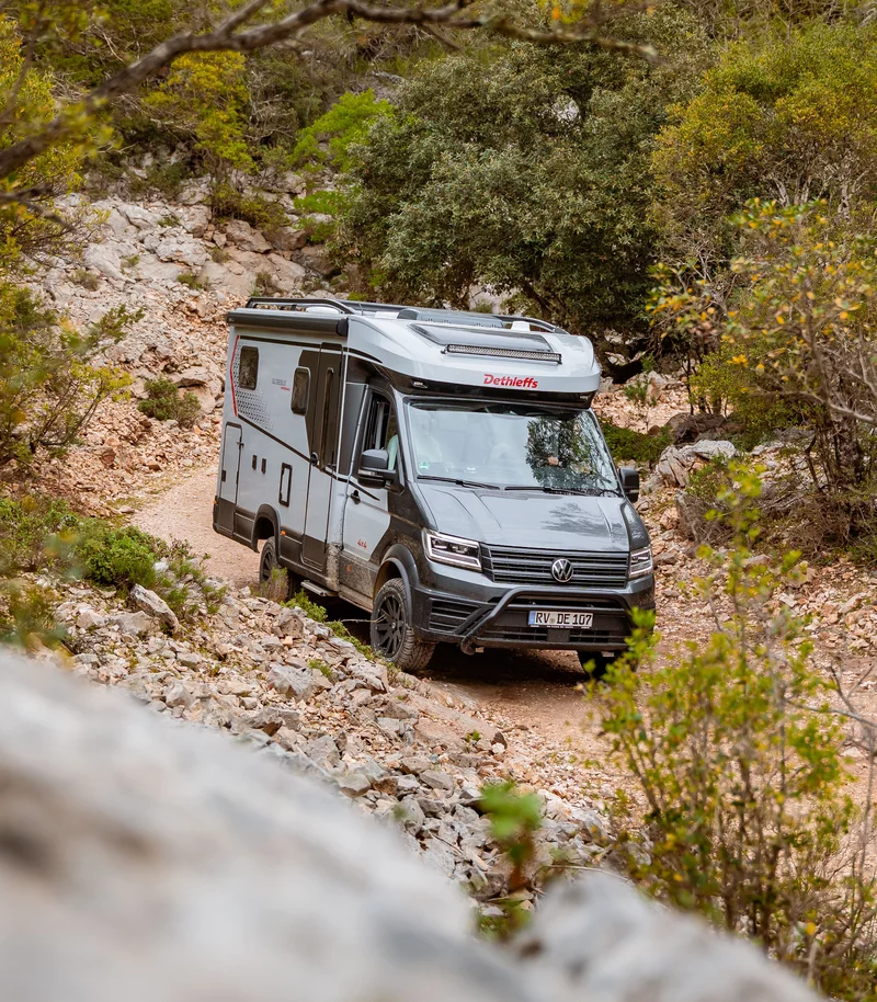 Mit dem Globebus Performance 4×4 schlägt Dethleffs ein neues Kapitel auf. Erstmals gibt es ein Reisemobil mit Allradantrieb in der Modellpalette, welches mit kraftvoller Optik und Offroad-Tauglichkeit begeistert. Basierend auf dem VW Crafter mit überlegener Allrad-Antriebstechnik, eröffnet der Globebus Performance 4×4 neue Möglichkeiten: Einfach mal abseits der befestigten Straßen unterwegs sein. Attraktive Spots erreichen, die ohne Allrad unerreichbar bleiben. Auch auf schlechten Wegen, bei Nässe oder Schnee die Sicherheit haben, durch und weiter zu kommen!